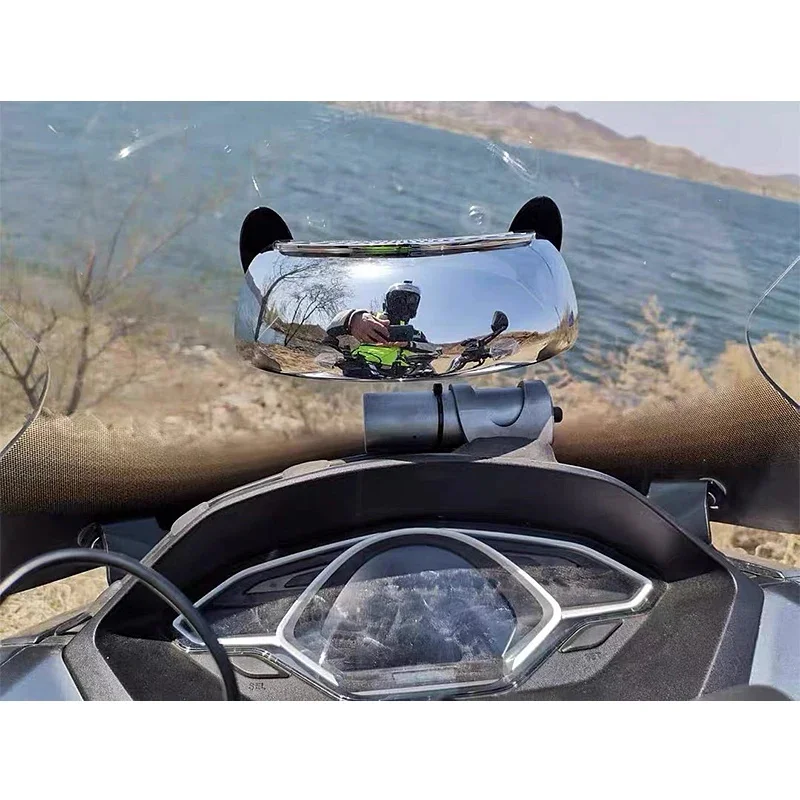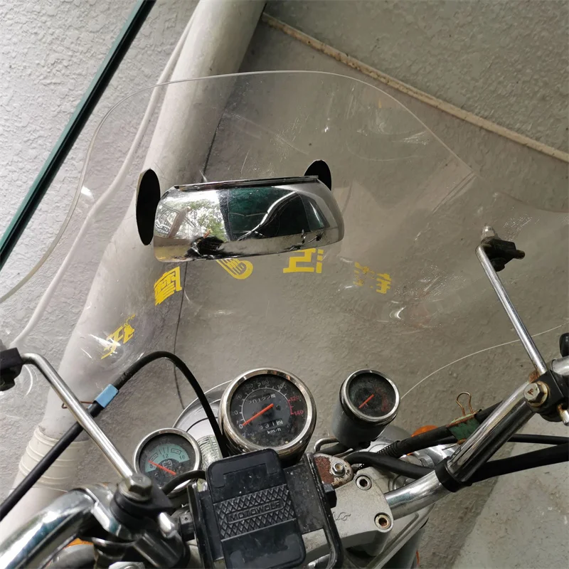 1. It is a parabolic mirror that is mounted to the centre front of a motorcycle/within the riders forward line of view.